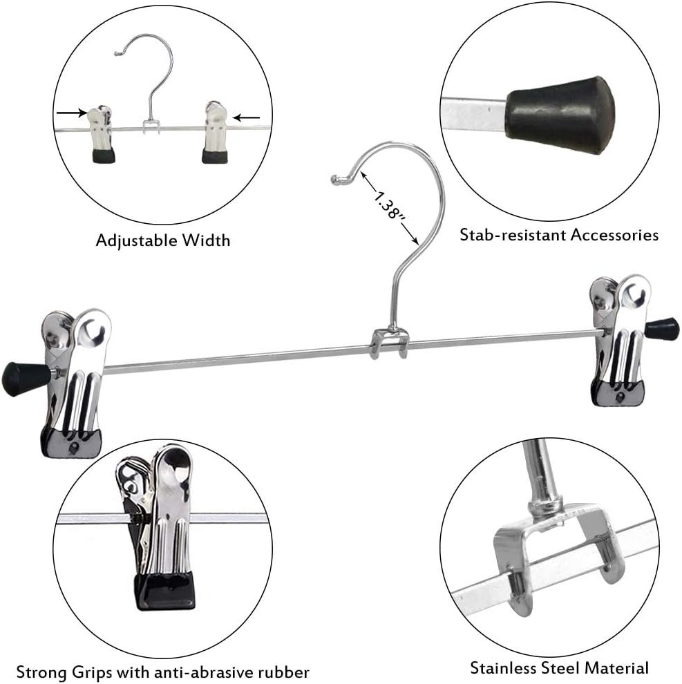 - Heavy Duty Metal Construction: Built from robust material, these adjustable hangers offer both strength and longevity even with daily use. The resilient frame ensures your jeans, skirts, and delicate items stay supported.